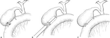 Choledochojejunostomy is a procedure for creating an anastomosis of the common bile duct (CBD) to the jejunum, performed to relieve symptoms of biliary obstruction and restore continuity to the biliary tract. Biliary obstruction can be caused by pathology above, at, or below the level of the cystic duct; it can lead to jaundice and pruritus, as well as predispose patients to infections such as cholangitis. Choledochojejunostomy refers specifically to an anastomosis at the level of the CBD. Accordingly, it is the procedure of choice for obstruction distal to the junction of the cystic duct and the common hepatic duct (CHD).